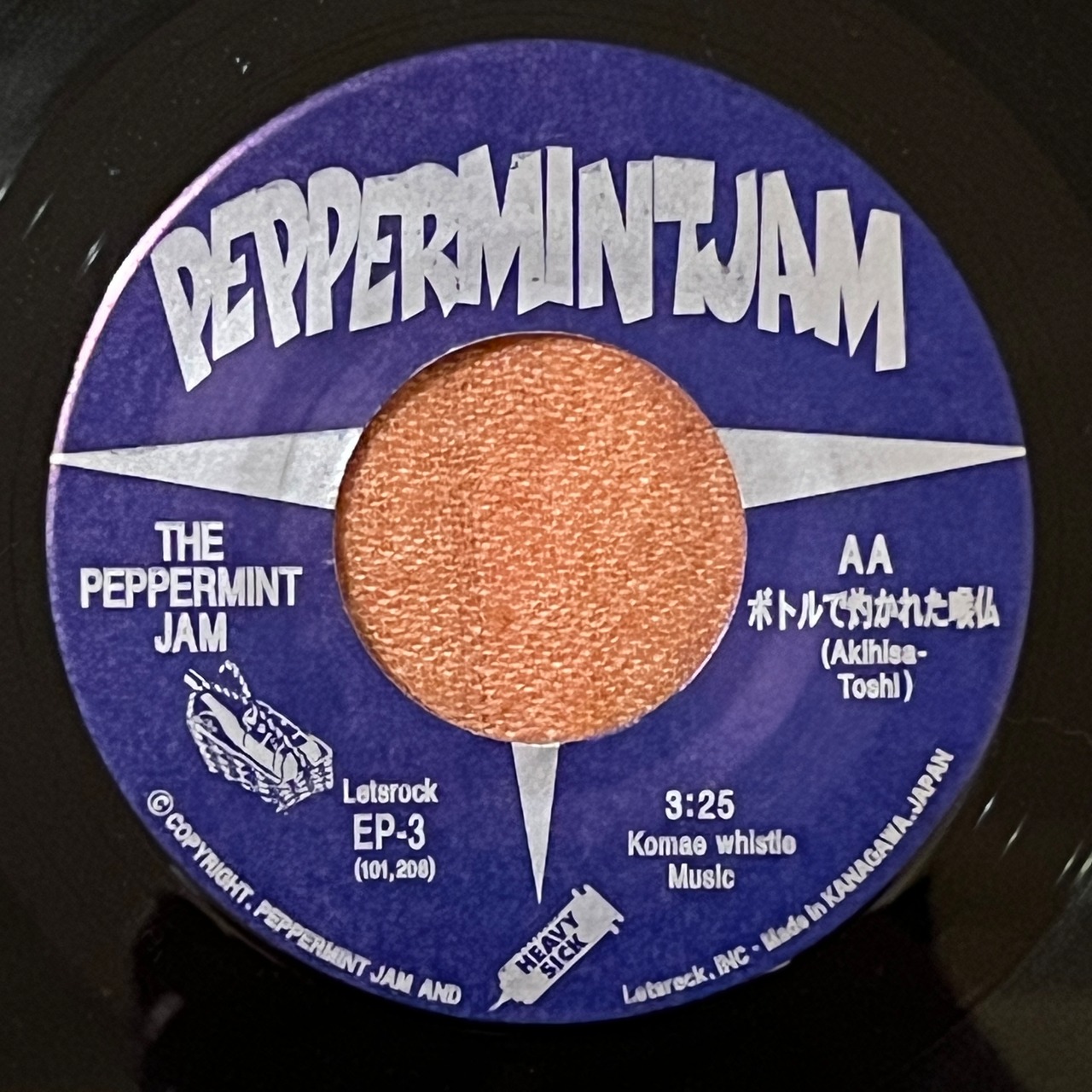 PEPPERMINT JAMは2000年代初頭に活動した日本のロカビリーバンド。荒々しくもストレートなサウンドで、国内のロカビリーシーンの中でも独自の存在感を放った。2002年にリリースされた7インチシングル『Let Go Crazy』は、A面に疾走感あふれるタイトル曲、AA面には酒場の熱気を感じさせる「ボトルで灼かれた喉仏」を収録した強力な2曲入り。わずかなプレス数で制作され、リリース当時からライブ会場や一部ショップでの流通に限られていたため、現在でも流通数は極めて少なく、コレクターズ・アイテムとして高い人気を誇る。ギターの荒削りなリフとスラップベースのグルーヴが一体となり、当時の熱量を真空パックしたかのような一枚。現在のシーンでも色褪せないエネルギーを放つ、ファン必携のレアシングル!