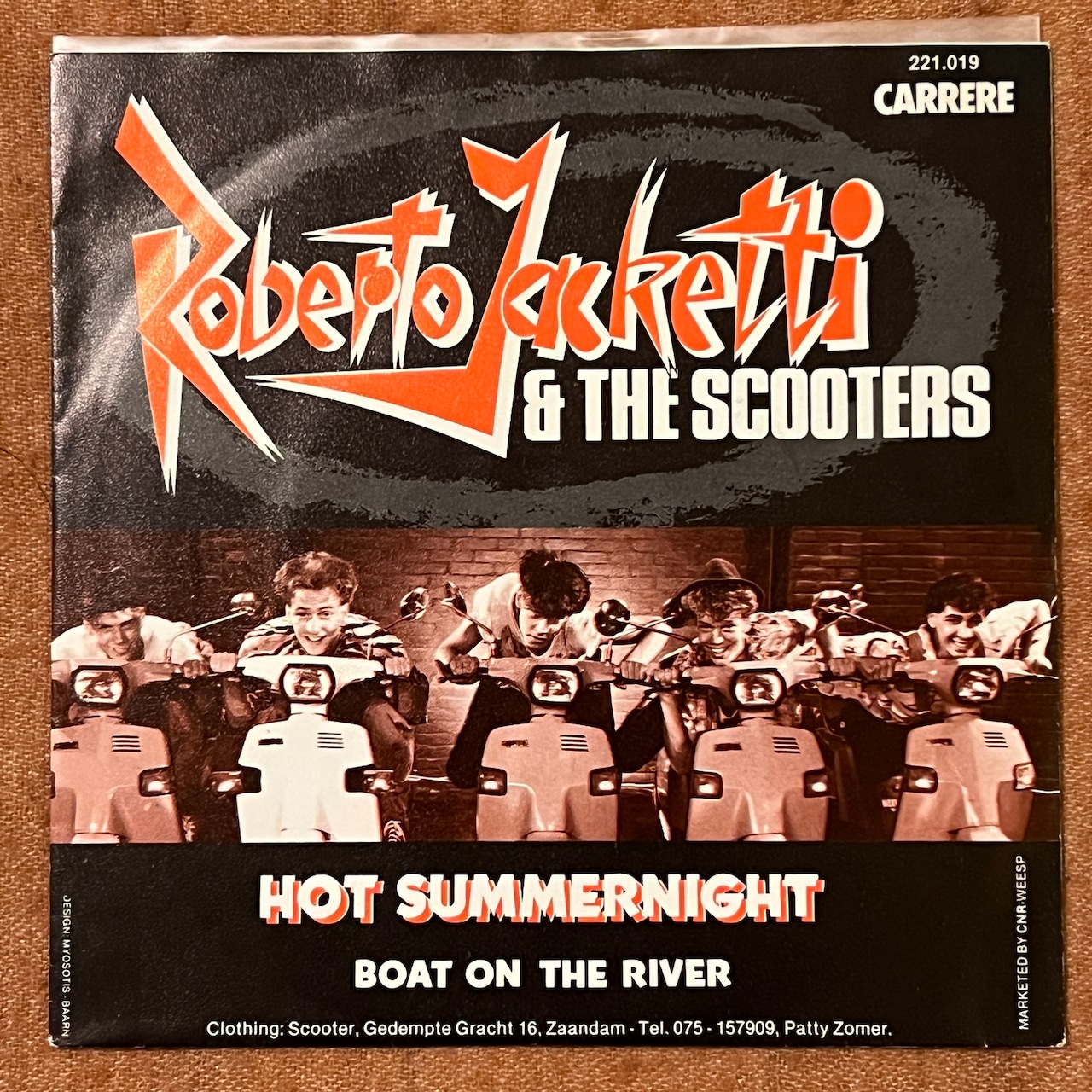 ROBERTO JACKETTI AND THE SCOOTERSは、1980年代初頭にオランダで活動したポップロック・グループで、後にテレビ司会者としても知られるErik van der Hoffがリードヴォーカルを務めたことで知られる。彼らの代表曲のひとつが1983年にリリースされたシングル『Hot Summernight』。その名の通り、夏の夜の熱気や開放感を映し出すようなメロディとリズムが特徴的で、軽やかで洗練されたポップサウンドに仕上がっている。A面「Hot Summernight」は、爽やかな旋律と耳に残るフックが印象的で、心地よい浮遊感を伴いながらリスナーを包み込む。ヴォーカルは甘く滑らかで、バックを固めるアンサンブルもシンプルながら確かなグルーヴを持ち、80年代ヨーロッパのポップスらしい都会的なムードを感じさせる。一方のB面「Dreams Don’t Die」もポップな感覚を保ちながら、メロディラインに郷愁を漂わせる楽曲で、表題曲と好対照を成す構成。両面を通じて、キャッチーでありながら品のあるポップセンスを聴かせ、当時のオランダの音楽シーンにおいて独自の存在感を示したシングルと言える。