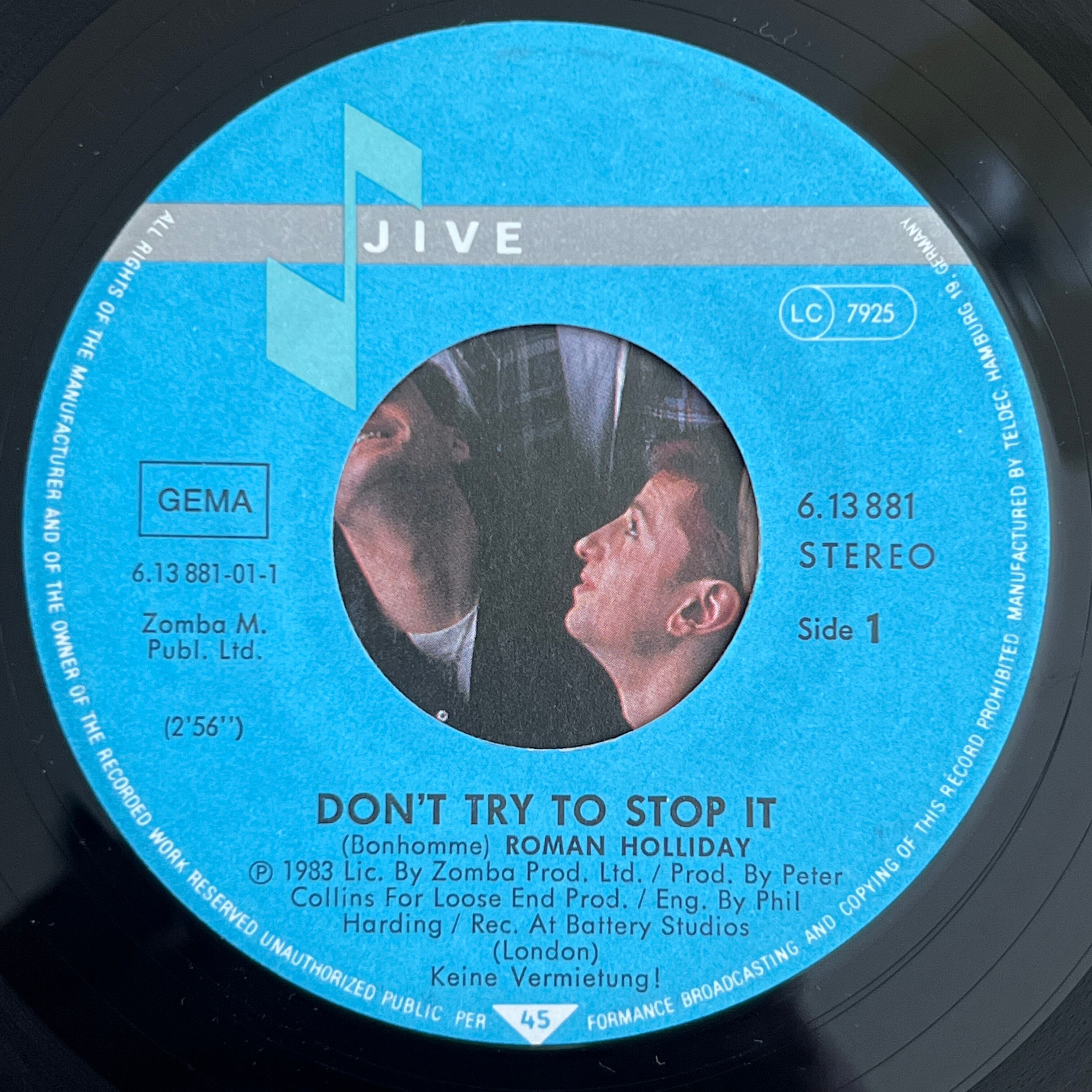 1980年代初頭にイギリスで結成されたニュー・ウェーブ・バンド「ROMAN HOLIDAY」。スウィングやロカビリーをベースにポップで独自のキャッチーなサウンドが特徴。1983年リリースのシングル「Don't Try to Stop It」は、UKチャートで14位を記録し、アメリカでも68位にランクインするヒット! まさに彼らの代表曲! A面の表題曲は躍動感あるリズムと印象的なメロディで、B面の「Beat My Time」もスウィング・ロカビリーな音楽性でどちらもクラブヒット! 80年代ポップ・ミュージックの魅力を凝縮した一枚!