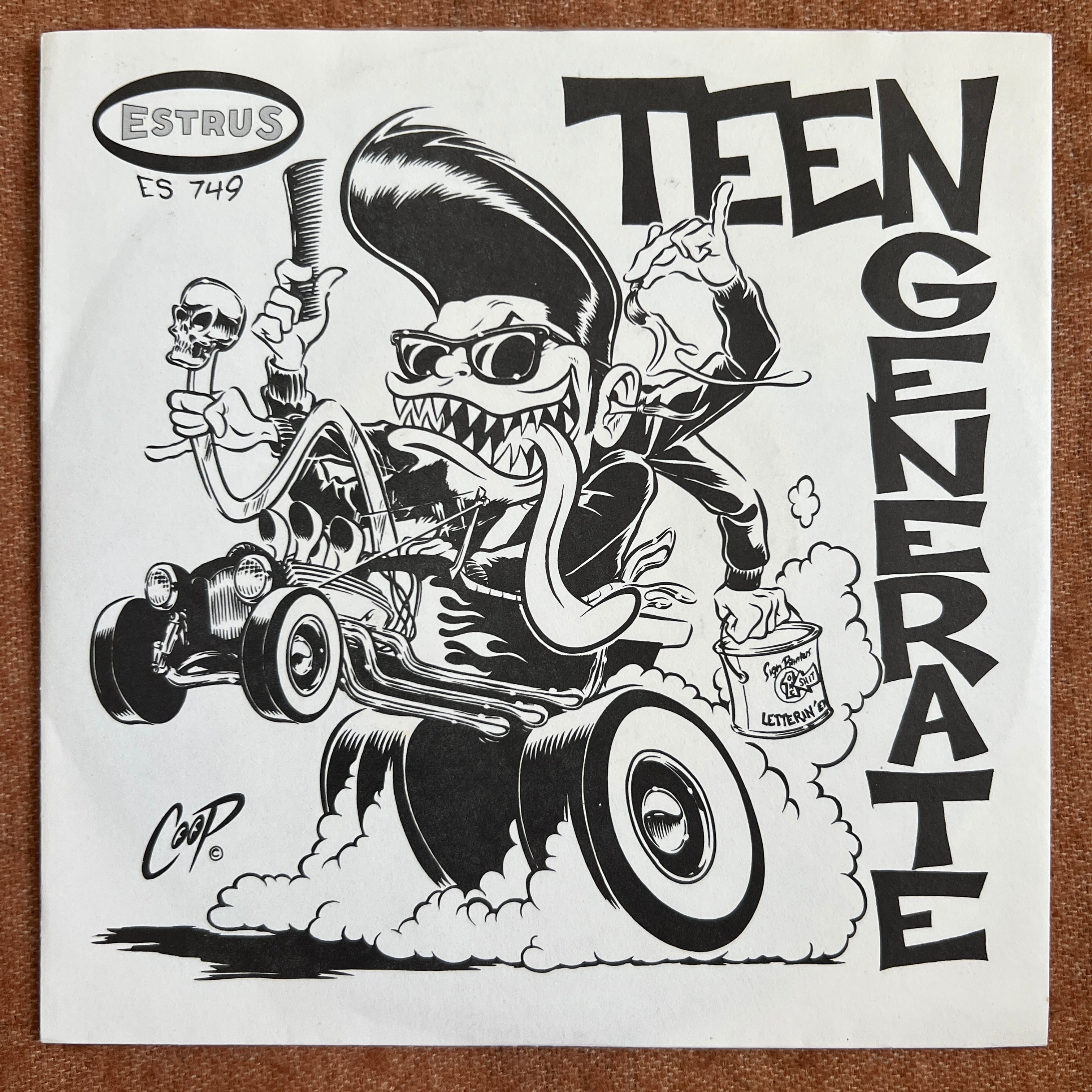 Teengenerateは90年代前半に東京で結成され、わずか数年の活動ながら世界中のガレージパンク・シーンに鮮烈な足跡を残した日本代表バンド! ローファイな爆音サウンドは、当時のUSインディーレーベルからも高い評価を受けた。1994年にリリースされた7インチ「Sex Cow」は、そんな彼らの勢いを象徴するシングル! A面の「Sex Cow」は、全力疾走するギターと荒々しいボーカルで一気に爆発するストレートなパンク・アンセム! B面の「Bad Boy」もシンプルなリフと骨太なリズムで突き抜け、ライブの熱気をそのまま刻み込んだかのような迫力! ガレージパンクの衝動をダイレクトに表現した必聴盤!