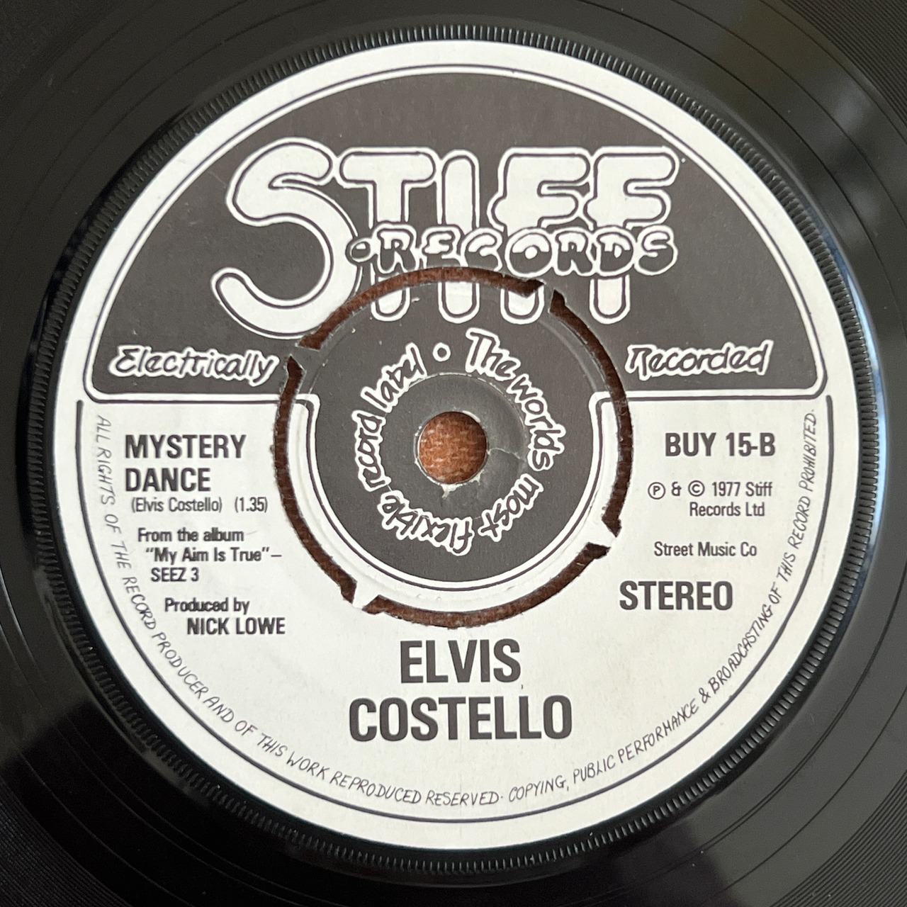 Elvis Costelloは70年代後半のパンク~ニュー・ウェイヴシーンを象徴するアーティスト。1977年にリリースした7インチ「Red Shoes」は、デビューアルバム『My Aim Is True』からのシングルで、初期Costelloサウンドの代表曲! A面「Red Shoes」は、列車の中で書かれたというちょっとロマンチックで皮肉な歌詞に、自然と体が動き出すキャッチーさ。B面「Mystery Dance」は軽快なロッキン・ナンバー! A面とB面で対照的な魅力を見せつつ、どちらもCostelloの初期らしいエネルギッシュさとウィットが感じられ必聴シングル!