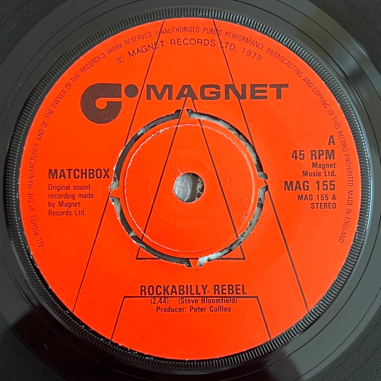 MATCHBOXは70年代後半のUKロカビリー・リバイバルを牽引した代表的バンド。その存在を決定づけたのが、1979年に発表されたシングル「Rockabilly Rebel」。ギタリストのスティーヴ・ブルームフィールドによるオリジナル曲で、軽快なスラップベースとツインギターが織りなす疾走感、そしてキャッチーなメロディが一体となった真のロカビリー・アンセム。UKシングルチャート18位を獲得、翌年にはニュージーランドで1位を記録するなど、当時のリバイバル・ブームを象徴する大ヒットとなった。カップリングの「I Don’t Wanna Boogie Alone」も、フロアを熱くさせるダンサブルな仕上がりで、両面ともにライブ定番となった強力な2曲を収録。後にファースト・アルバム『Matchbox』にも収められ、彼らのキャリアを語る上で欠かせない歴史的一枚。ロカビリーファン必携のクラシック・シングル!