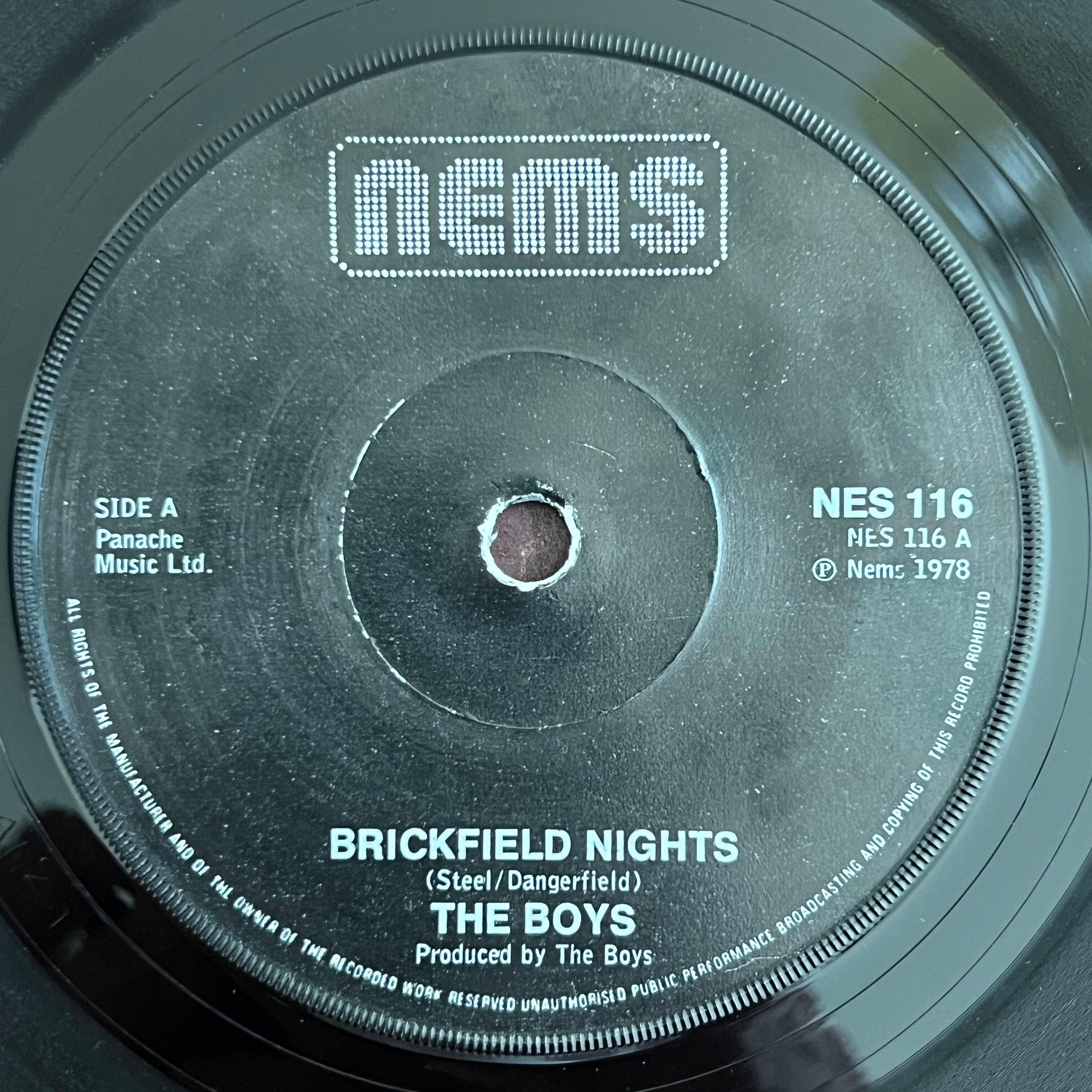 The Boysは1976年にロンドンで結成されたパンクバンドで、同時期のThe DamnedやThe Clashと並んで“パンク第一世代”。「Brickfield Nights / Teacher's Pet」(NES 116)は1978年リリースのシングルで、A面「Brickfield Nights」は若者たちの退屈な日常と反抗心を描いたクラブヒット曲! B面「Teacher's Pet」は学校生活や教師との関係をテーマにした楽曲で、バンドの多彩さを感じさせ、パンクらしい勢いとポップが詰まった一曲!