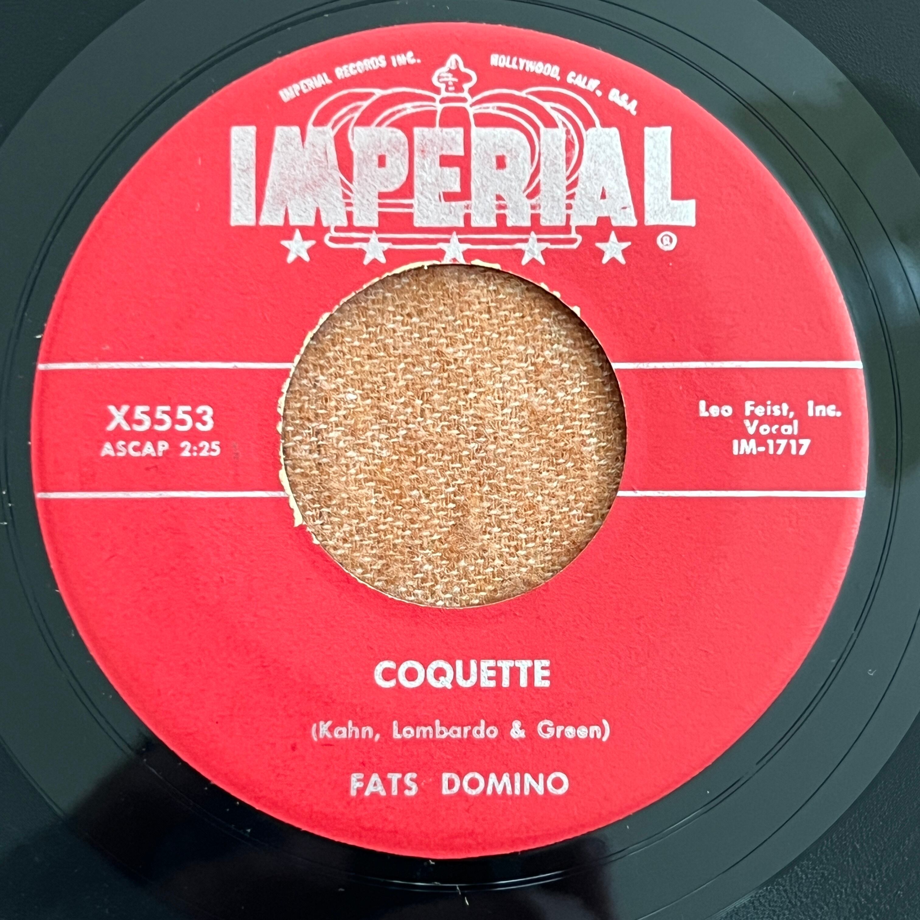 1958年に発表された御大Fats Dominoの「Whole Lotta Loving」は、ニューオーリンズR&Bの香りと初期R&Rのスウィングが絶妙に混ざり合った名曲! 彼特有の転がるピアノと優しいヴォーカル、そしてDave Bartholomewとの黄金タッグが生んだ軽やかなグルーヴがサイコー! 2分にも満たない短さの中に、甘さと切なさ、そしてダンスフロアの熱気までも詰め込んだ完璧なポップチューン! B面「Coquette」も洒落たR&B! 50年代R&Rの温度とリズムをそのまま閉じ込めた、永遠のスタンダード!