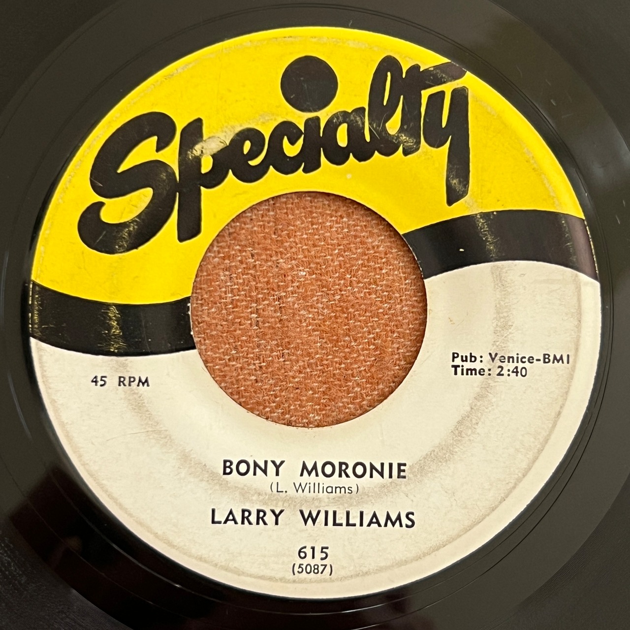 1957年リリース、Larry Williams「Bony Moronie / You Bug Me, Baby」は、初期R&Rの衝動を200%詰め込んだ7インチ! 跳ねるピアノとシャウト気味のヴォーカルが絡み合い、聴くたびに体が勝手に揺れる生々しいグルーヴ! B面「You Bug Me, Baby」もWilliamsらしい歌い回しで、A面とはまた違った魅力! R&Rの原点を体感したい人に刺さる一枚!