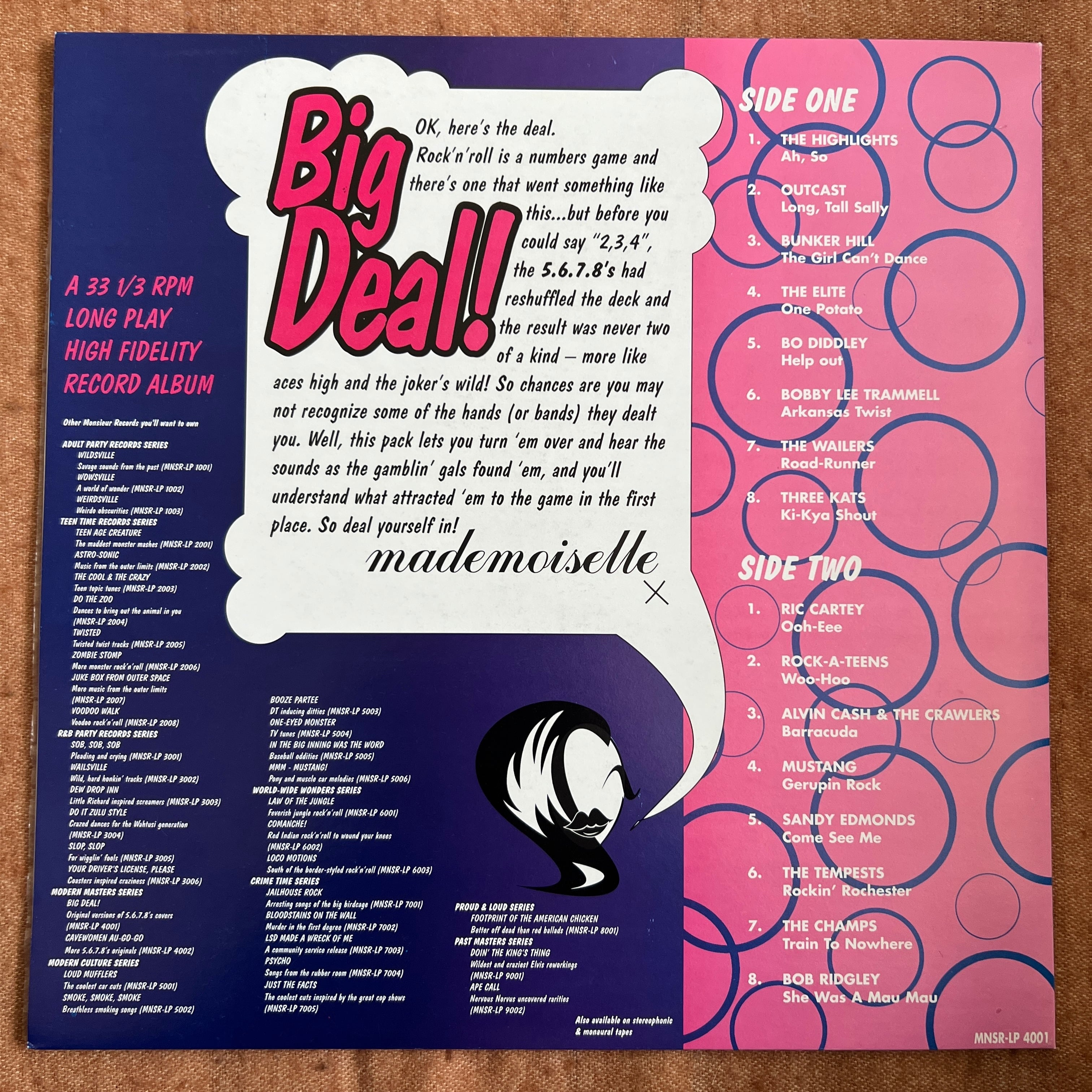 2001年にリリースしたコンピ「Big Deal!!」は、60’sガレージ〜初期R&Rを集めたコンピ! The Highlights や Bunker Hill、Rock‑A‑Teens などのナンバー収録! The 5.6.7.8’s の元ネタ集としても知られ、R&Rの原点に触れつつ、その熱量とグルーヴが現代にもバッチリハマる必聴盤!