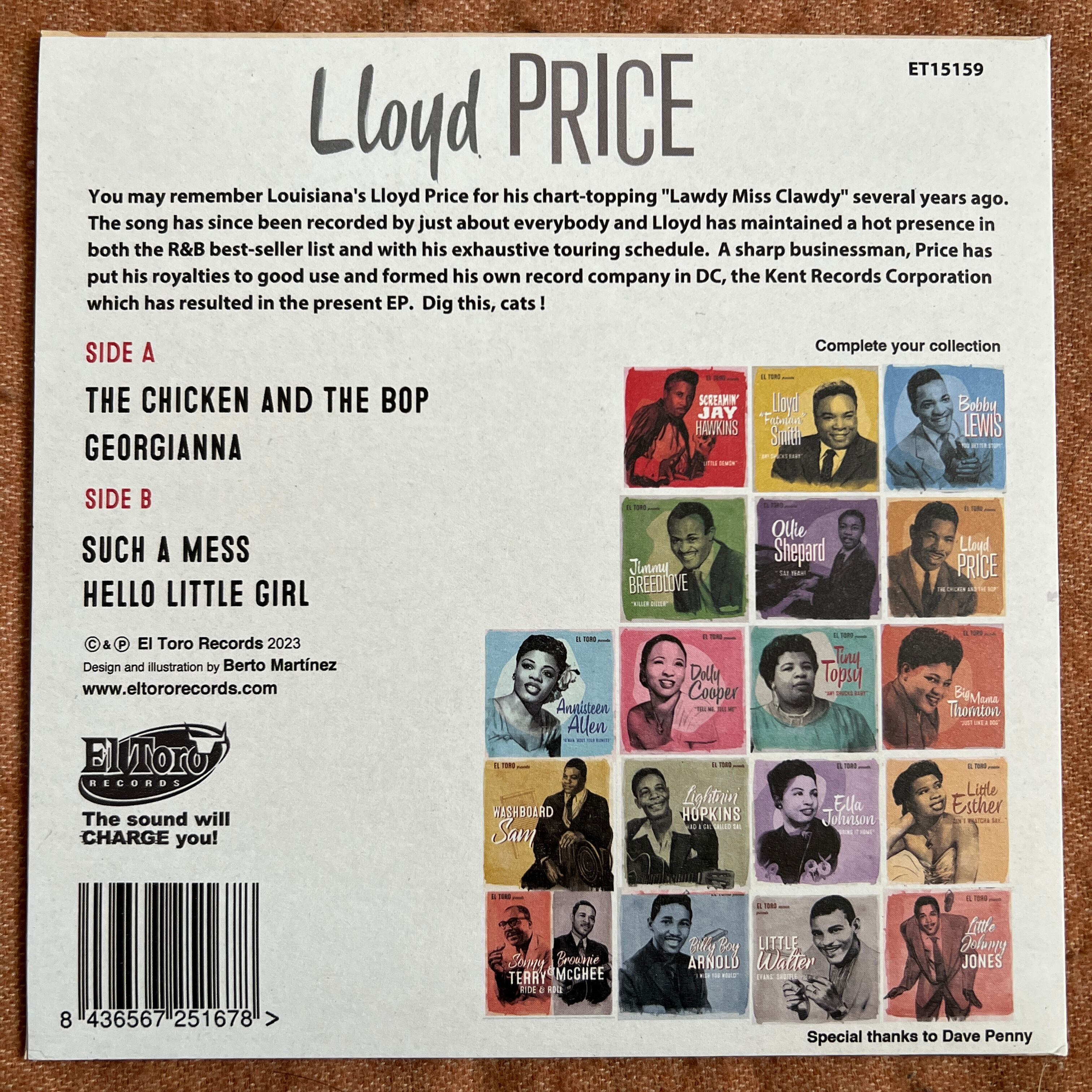 米ニューオーリンズ出身のR&B/R&R歌手 LLOYD PRICE。1950年代から活躍し、’52年の「Lawdy Miss Clawdy」で頭角を現した後、数々のヒットを放った名シンガー! 1957年リリースの「The Chicken And The Bop」をはじめ、彼のキャリア初期名曲をコンパイルした7インチEP! R&Bジャイヴ〜初期R&R、ストロール好きなら文句なく刺さる! 「Such A Mess」なんかワイルド・R&R系コンピの常連だね! ニューオーリンズR&Bの黒っぽいグルーヴと跳ねるリズムが、ジャンプ・ブルースやスカのルーツ感ともリンク。そういう音に惹かれてる人なら、この7インチ、間違いない!