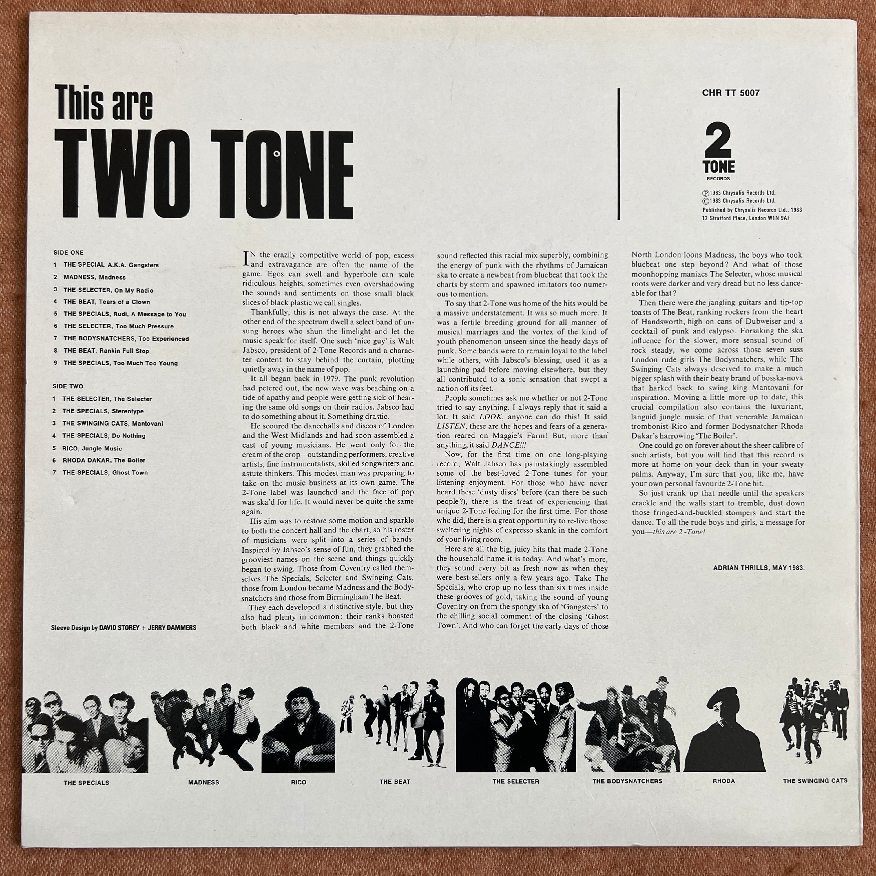 2トーン・スカは、70年代末のイギリスで生まれたスカ再解釈のスタイルで、60年代ジャマイカのスカにパンクの勢いやUKらしい尖りを加えた音が特徴。The Specials や The Selecter などが中心となり、人種の壁を越える姿勢もシーンを象徴。「This Are Two Tone」は1983年に出たコンピで、The Specials、The Selecter、The Beat、Rico、Rhoda Dakar ら2トーンを代表する面々のシングルをまとめた内容。スカや2トーン、ネオスカの教科書!