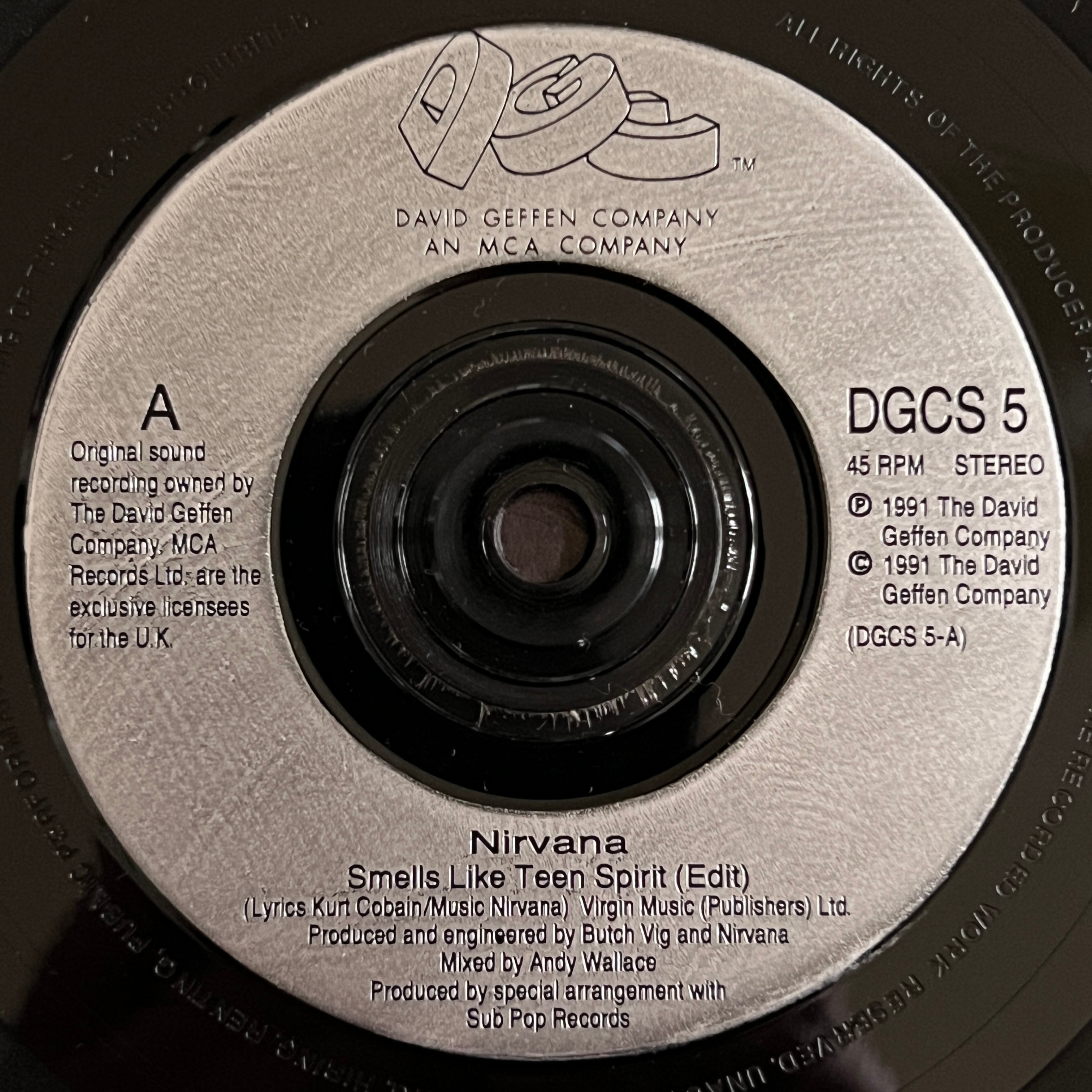Nirvana は1990年代初頭に登場し、荒々しくも哀愁あるギターと切実な歌詞で“グランジ”を世界に知らしめたアメリカのロック・バンド。メジャー契約後、2ndアルバムに収録された「Smells Like Teen Spirit」が、その後のロックシーンを大きく変えた。1991年9月10日にシングルとしてリリースされ、Nirvana の代表曲。イントロのキャッチーなギターリフは彼らを知らなくても聴いたことあるはず。グランジ、オルタナティブ・ロック好きは家宝モノ7インチ!